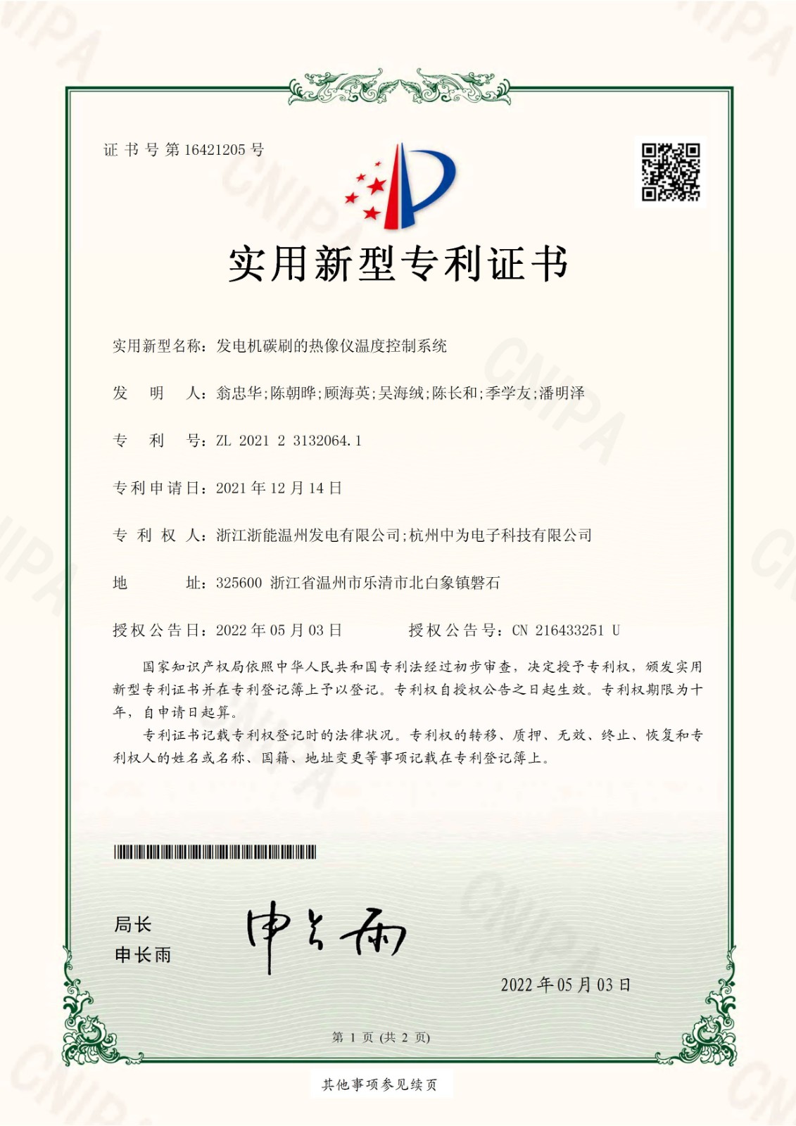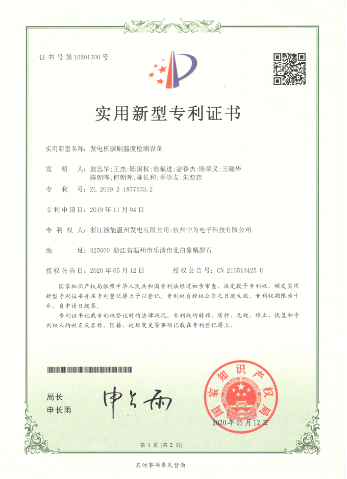 本項(xiàng)目已申請(qǐng)2項(xiàng)實(shí)用新型專利,并發(fā)表一篇論文;一項(xiàng)專利名稱為“發(fā)電機(jī)碳刷溫度檢測設(shè)備”,申請(qǐng)?zhí)枮镃N201921877533.2 ;一項(xiàng)專利名稱為“發(fā)電機(jī)碳刷紅外熱像儀”,申請(qǐng)?zhí)枮镃N201921877571.8;論文名稱為“集電環(huán)-碳刷紅外熱成像在線監(jiān)測系統(tǒng)”,電力系統(tǒng)裝備。