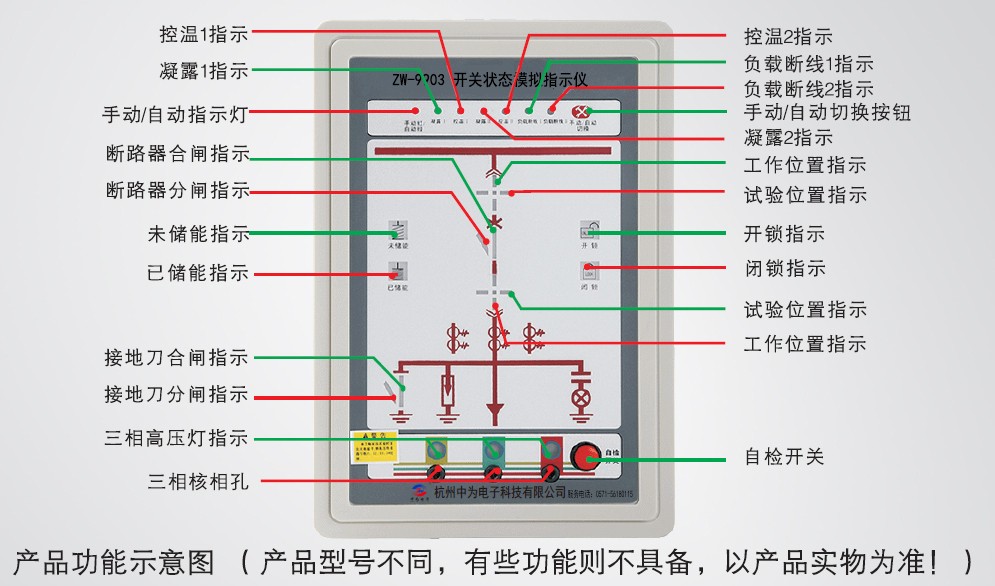 工作位置觸點(diǎn)閉合時(shí),紅色垂直模擬條點(diǎn)亮,顯示斷路器位于工作位置;試驗(yàn)位置觸點(diǎn)閉合時(shí),綠色水平模擬條點(diǎn)亮,顯示斷路器位于試驗(yàn)位置。