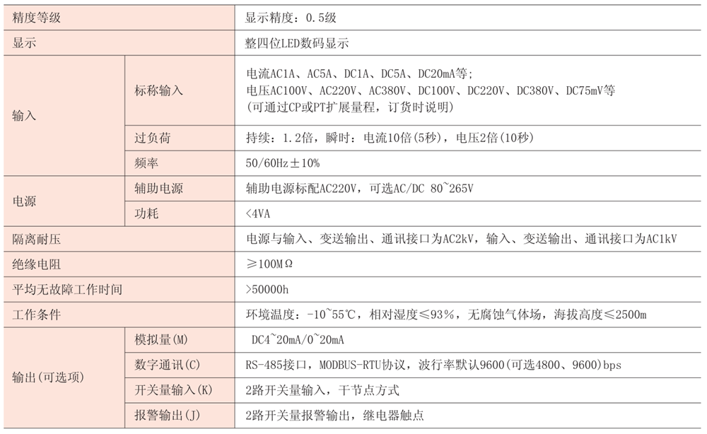 RS485通訊,“MC”代表同時(shí)帶“M”模擬量輸出和“C”RS485通訊,“KC”“JC”“JM”“JMC”同理 。
